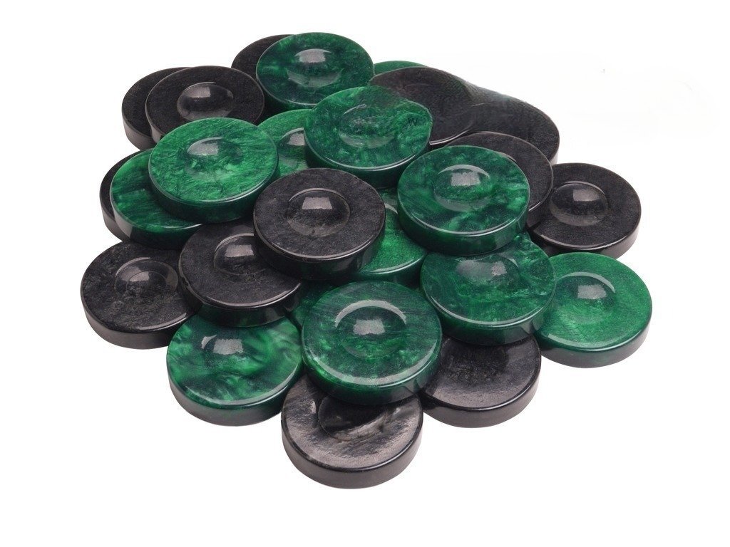 (0 customer review)Backgammon Checkers - High Gloss Acrylic - Black & Green (1 1/2in. Dia.) - Set of 30