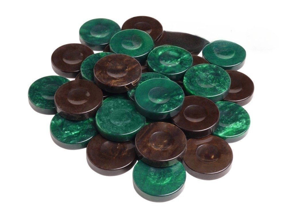 (0 customer review)Backgammon Checkers - High Gloss Acrylic - Brown & Green (1 1/2in. Dia.) - Set of 30