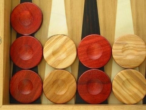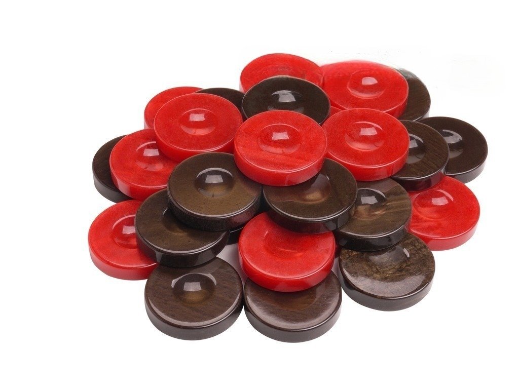 Backgammon Checkers - Olive Wood - Red - Set of 30