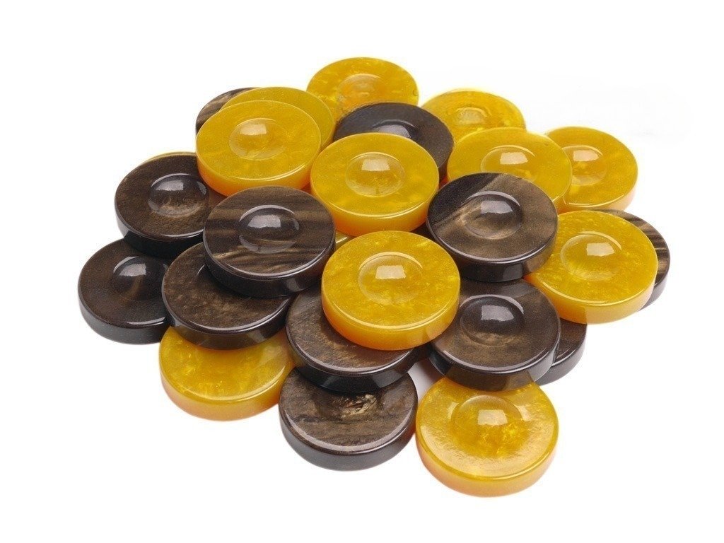 (0 customer review)Backgammon Checkers - High Gloss Acrylic - Brown & Yellow (1 1/2in. Dia.) - Set of 30