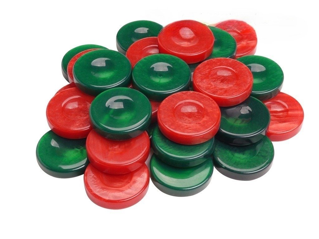 (0 customer review)Backgammon Checkers - High Gloss Acrylic - Green & Red (1 1/2in. Dia.) - Set of 30
