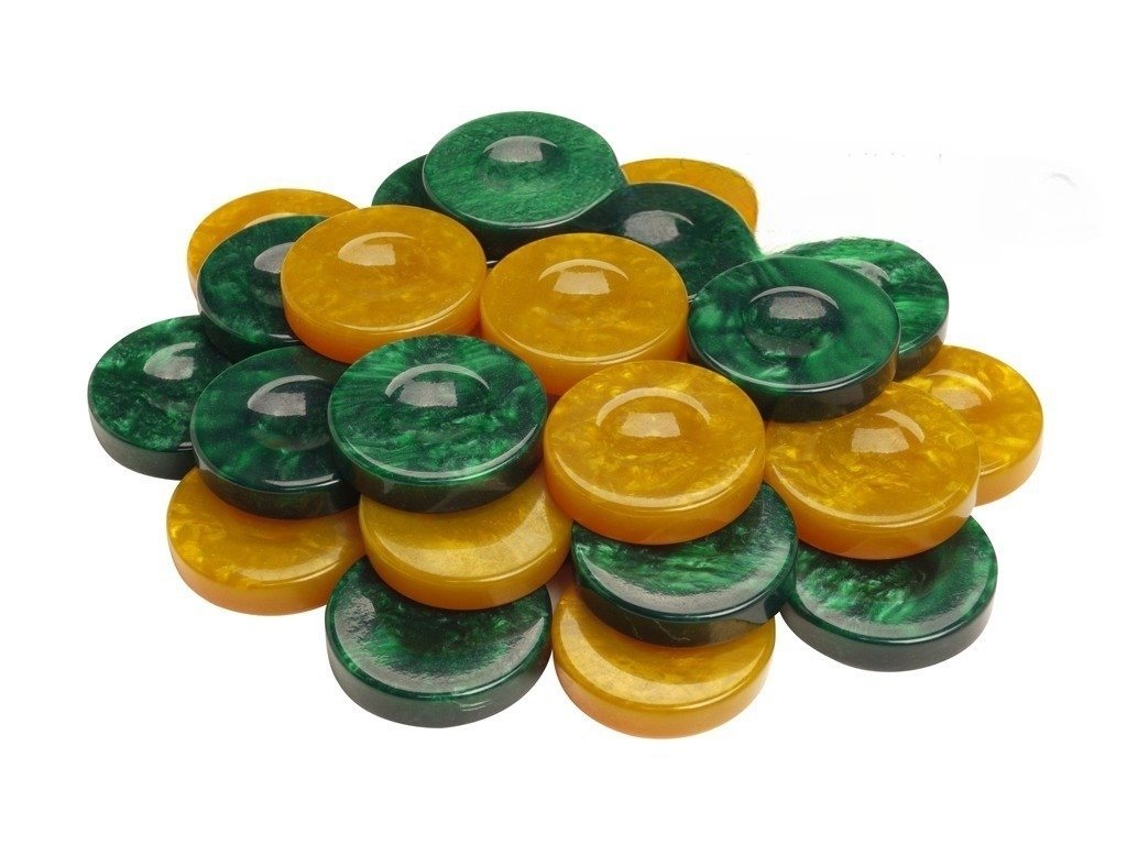 (0 customer review)Backgammon Checkers - High Gloss Acrylic - Green & Yellow (1 1/2in. Dia.) - Set of 30