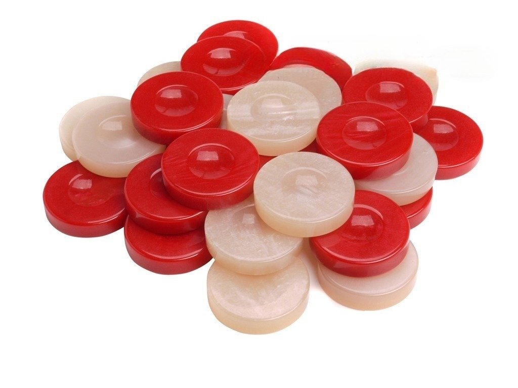 Backgammon Checkers - High Gloss Acrylic - Red & Ivory (1 1/2in. Dia.) - Set of 30