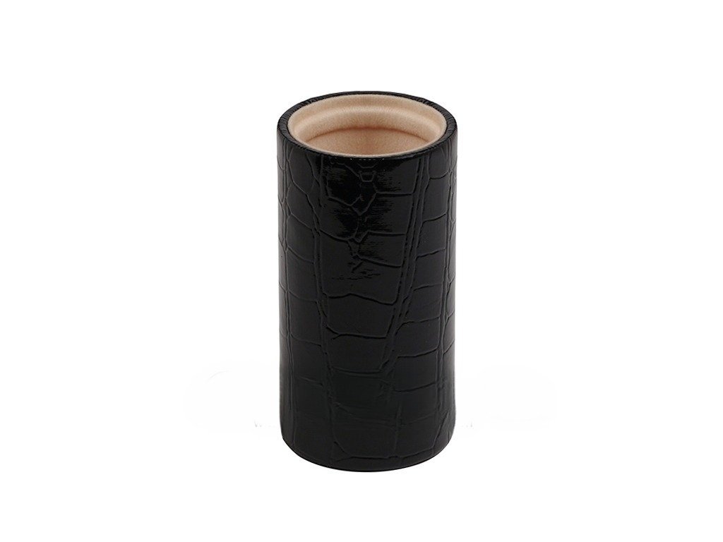 (0 customer review)Black Croco Leatherette Backgammon Dice Cup - Round - Cream Interior with Trip Lip