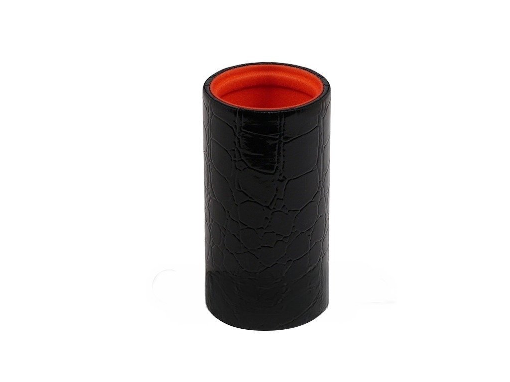 (0 customer review)Black Croco Leatherette Backgammon Dice Cup - Round - Orange Interior with Trip Lip