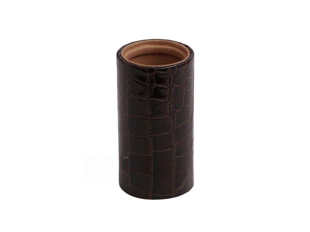 Brown Croco Leatherette Backgammon Dice Cup - Round - Beige Interior with Trip Lip