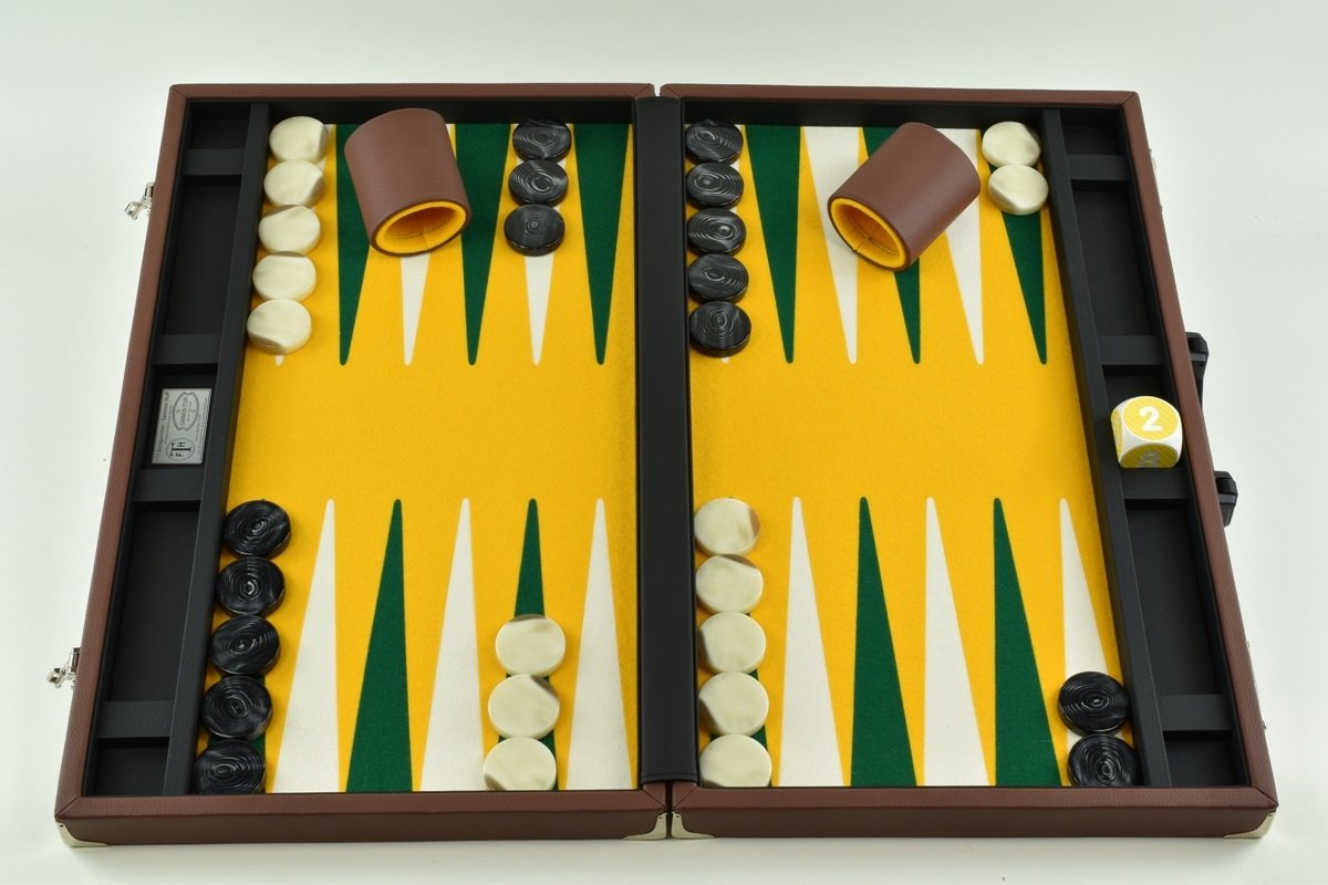 (0 customer review)Sand-Green-Gold Jumbo FTH Backgammon Set. 50mm Checkers
