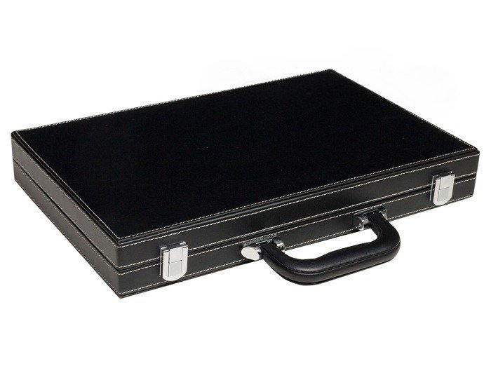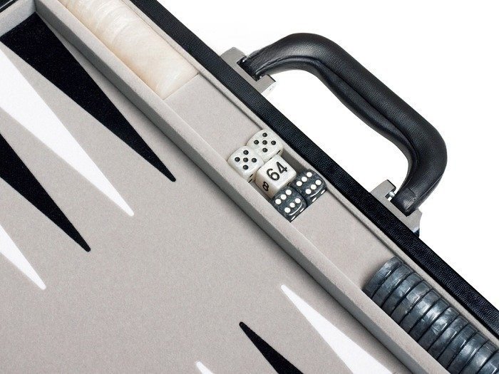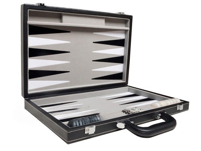 15-inch Leatherette Backgammon Set – Inlaid Velvet Field – Black/Grey
