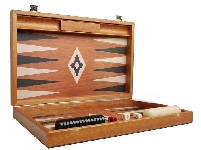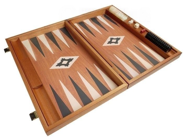 19-inch Wood Backgammon Set – Mahogany with Printed Field and Side Racks