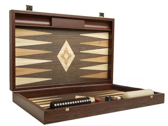 19-inch Wood Backgammon Set – Wenge with Printed Field and Side Racks