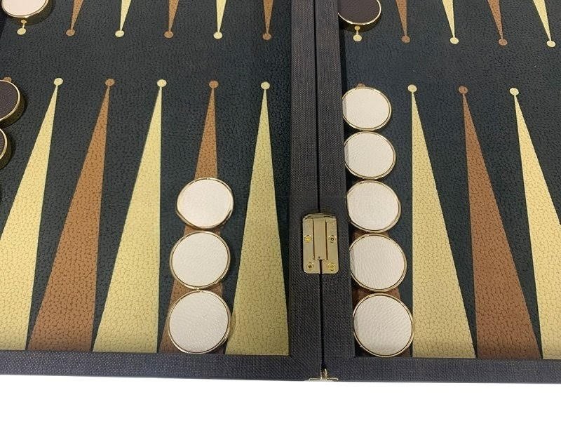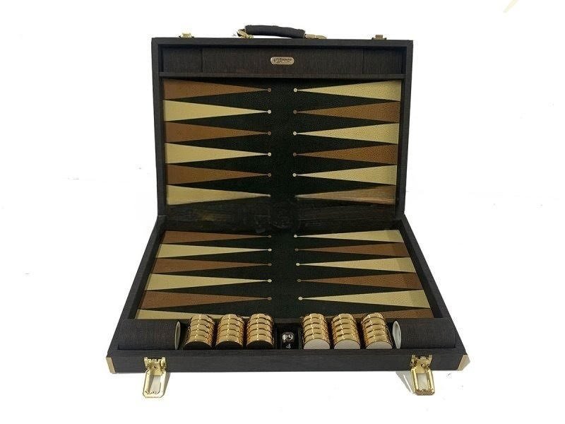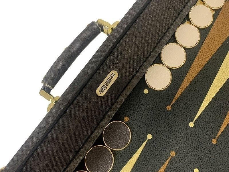 • 21″ Tournament Size Brown Tex Backgammon Set&Gold Plated Checkers