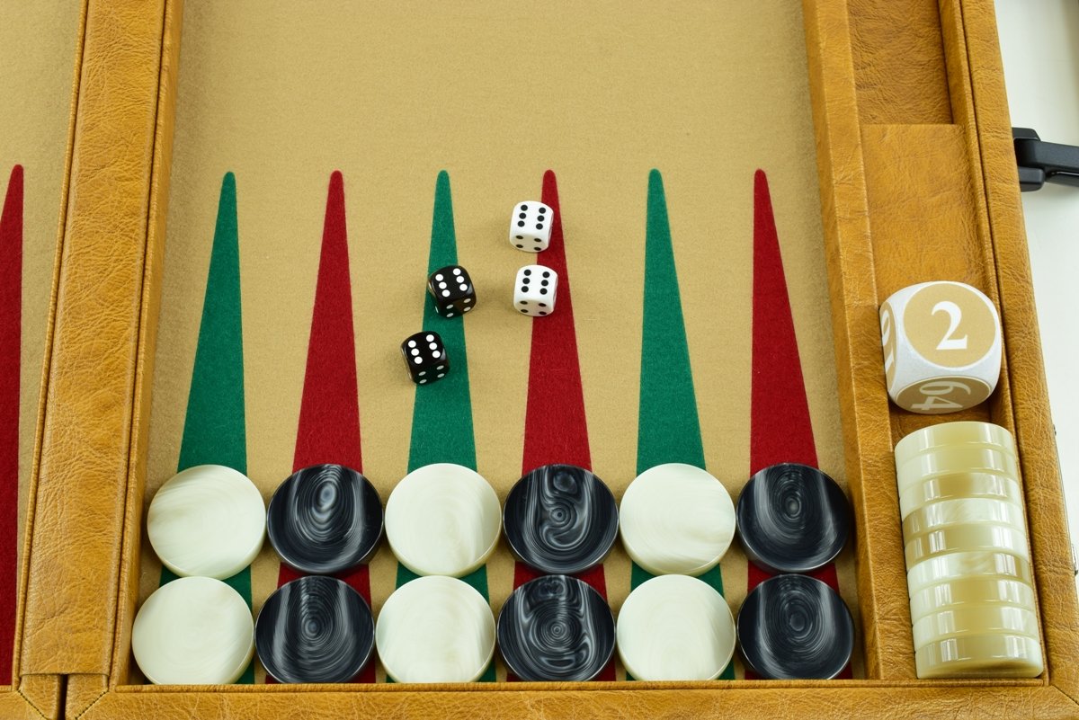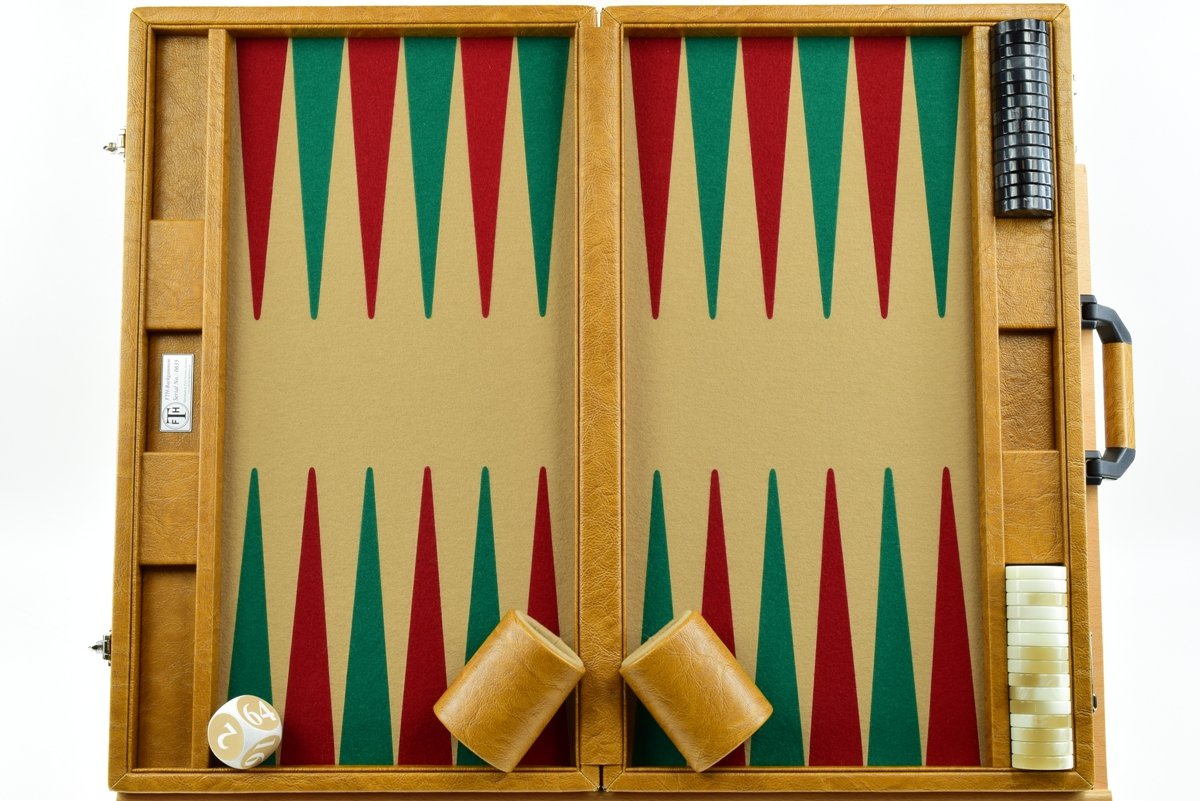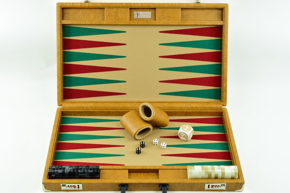 • “Autumn Cognac” – Special Edition Sand-Red-Green FTH Tournament Size Backgammon Board. 45mm Checkers