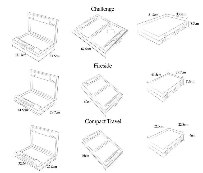 Choose between two styles: Tabletop board with a suedette lid and base, or an Attache case which is full leather with the addition of a handle