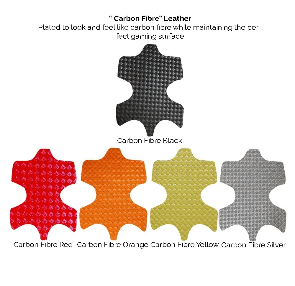 Our complete range of products is available in a wide array of colors through our customization service. We offer complimentary design services to personalize your board with a variety of gaming leathers at no extra charge. For additional design options, including exotic and custom leather choices, please contact us for a quote.