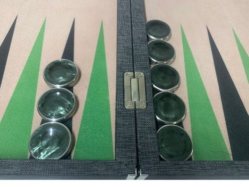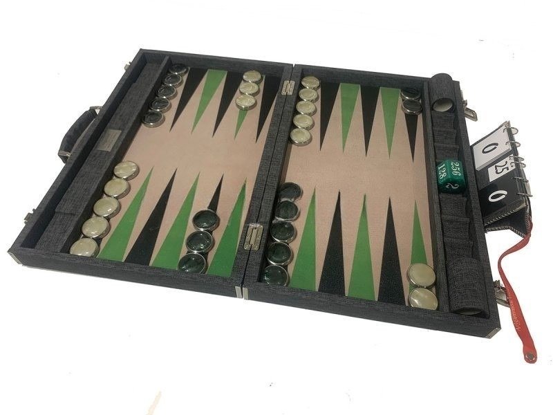 Whether you’re a seasoned competitor or a casual enthusiast, the Competition Size Backgammon Set with Chrome Checkers is sure to impress. Embrace the spirit of competition and elevate your gaming experience with this exquisite set, destined to become the centerpiece of your gaming collection.