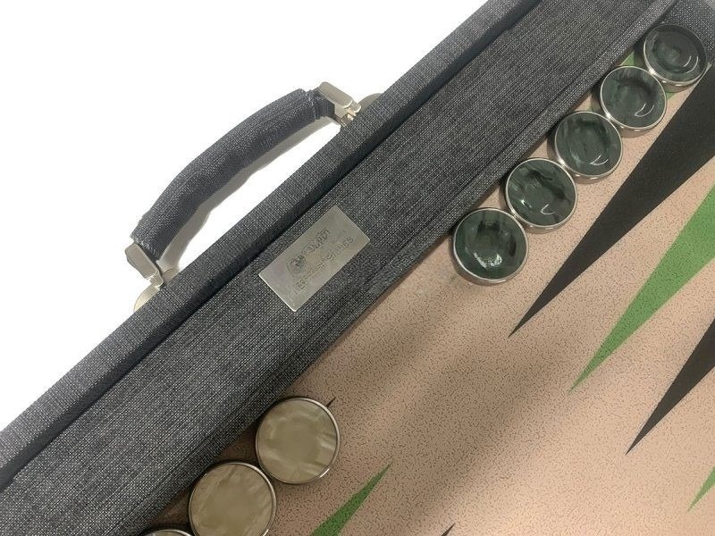 Playing Surface: A special synthetic sewn cloth is chosen for its durability, stain resistance and unmatched playing characteristics. It provides action dice rolls as well as a silky, gliding feeling for the movement of checkers.