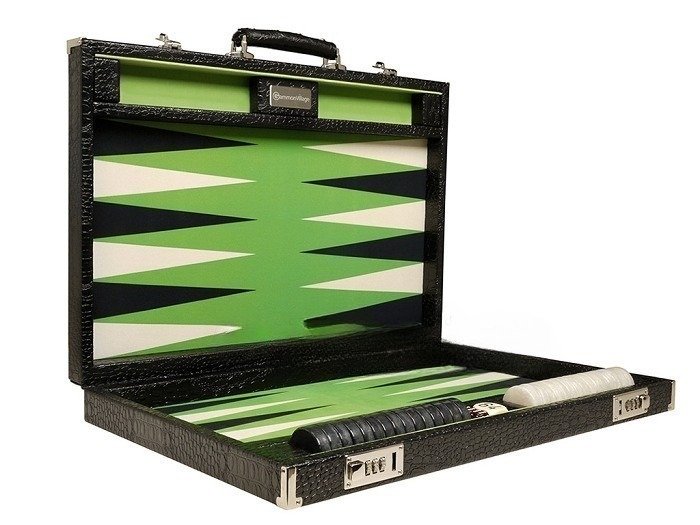 GammonVillage Tournament Backgammon Set – Champion Class – Black with Green Field