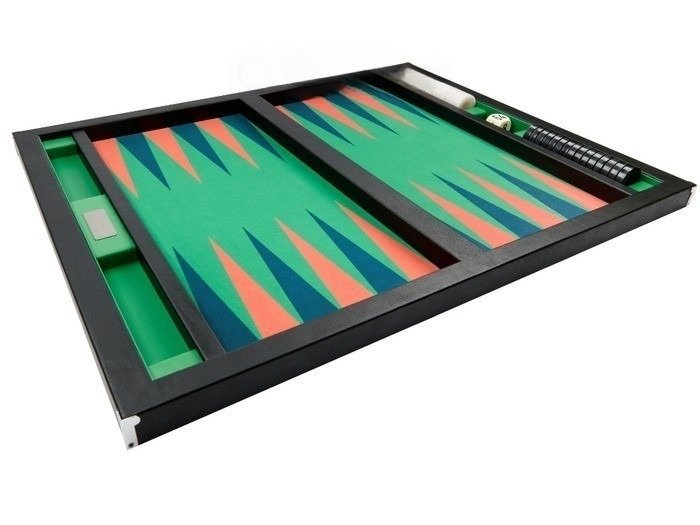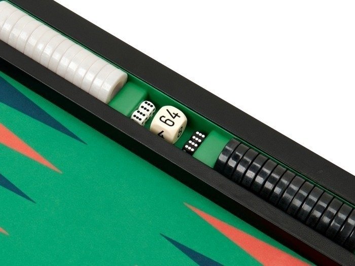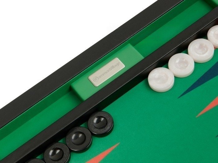 GammonVillage Tournament Backgammon Set – Table Top – Black with Green Field