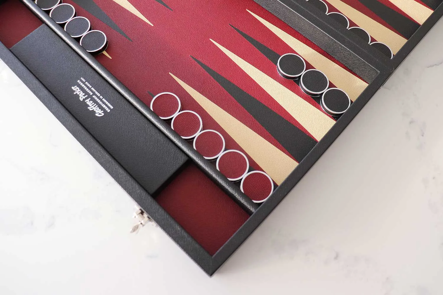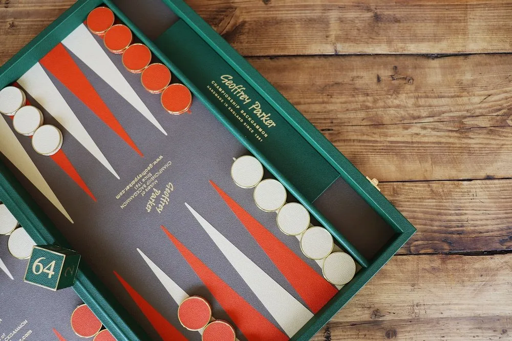 Discover unparalleled luxury with Geoffrey Parker’s bespoke backgammon sets. Each set is meticulously crafted to your exact specifications, ensuring a one-of-a-kind, high-quality product. Select from over 28,500 possible color combinations using our traditional gaming leather, and further customize with options from our bridle hides and exotic leathers. Every backgammon board is handcrafted in the picturesque Essex countryside, guaranteeing exceptional craftsmanship and a distinctive touch of elegance.