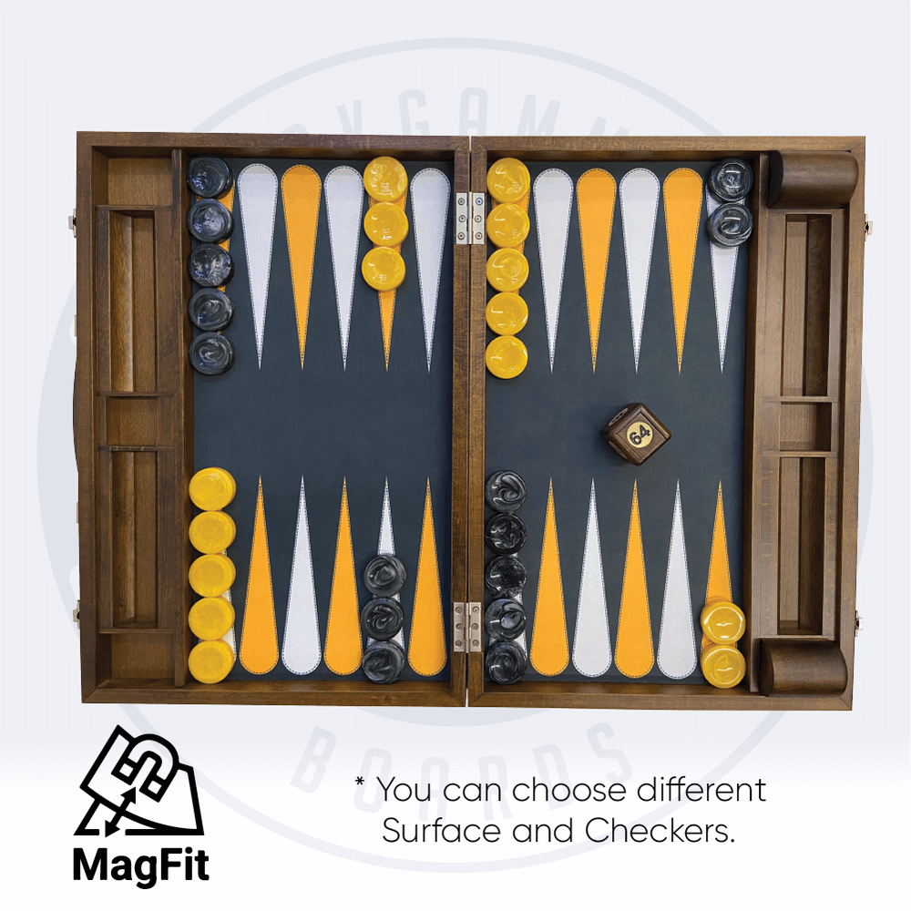 Surface Material: Specially produced FM fabric that provides unique satisfaction for the checker glide and dice movements.