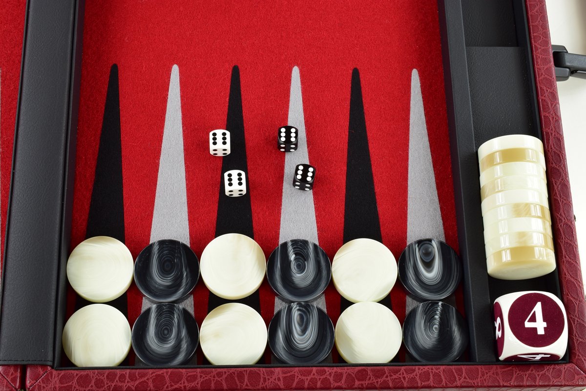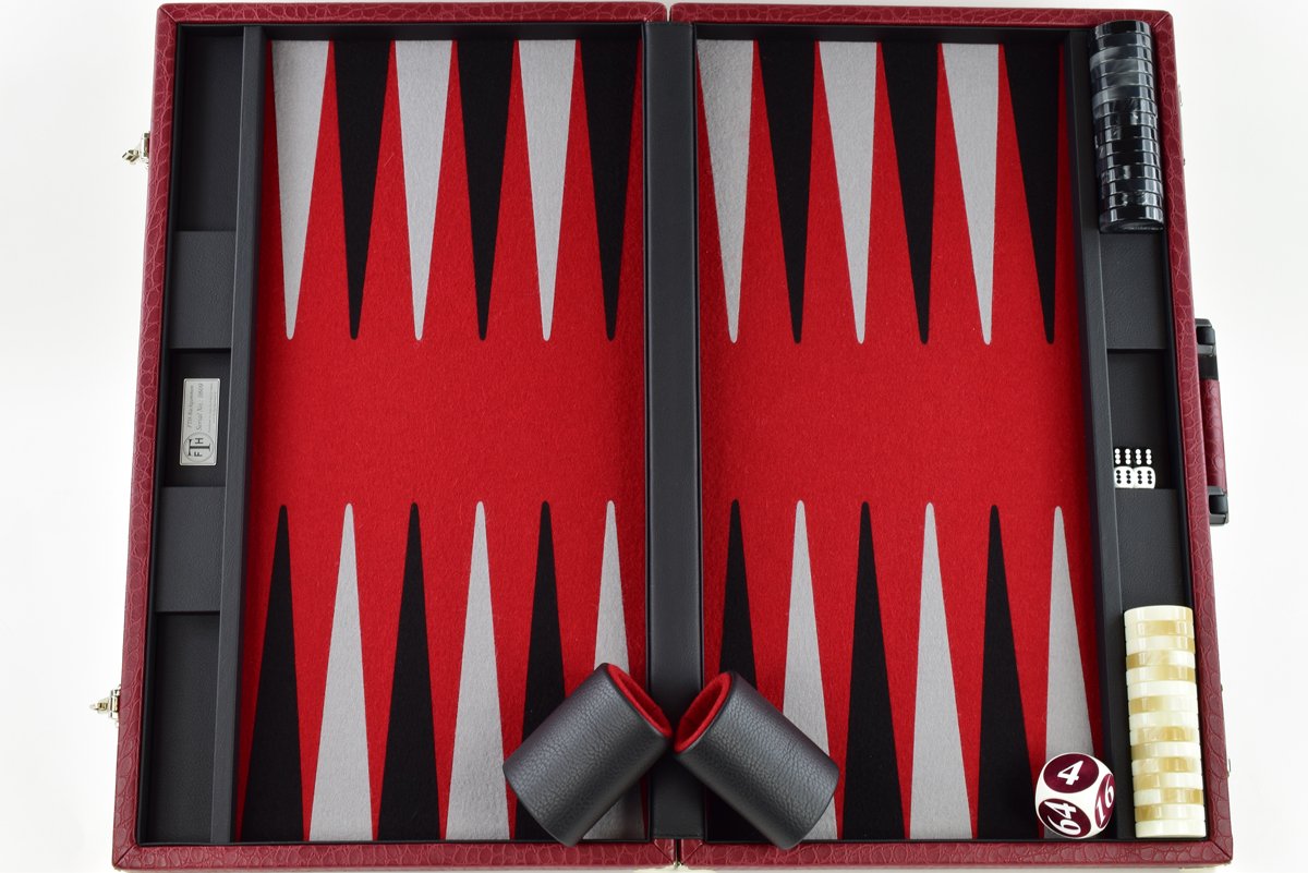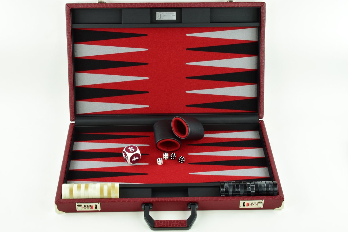 • “Red Crocodile” – Special Edition Red-Black-Gray FTH Tournament Size Backgammon Board. 45mm Checkers