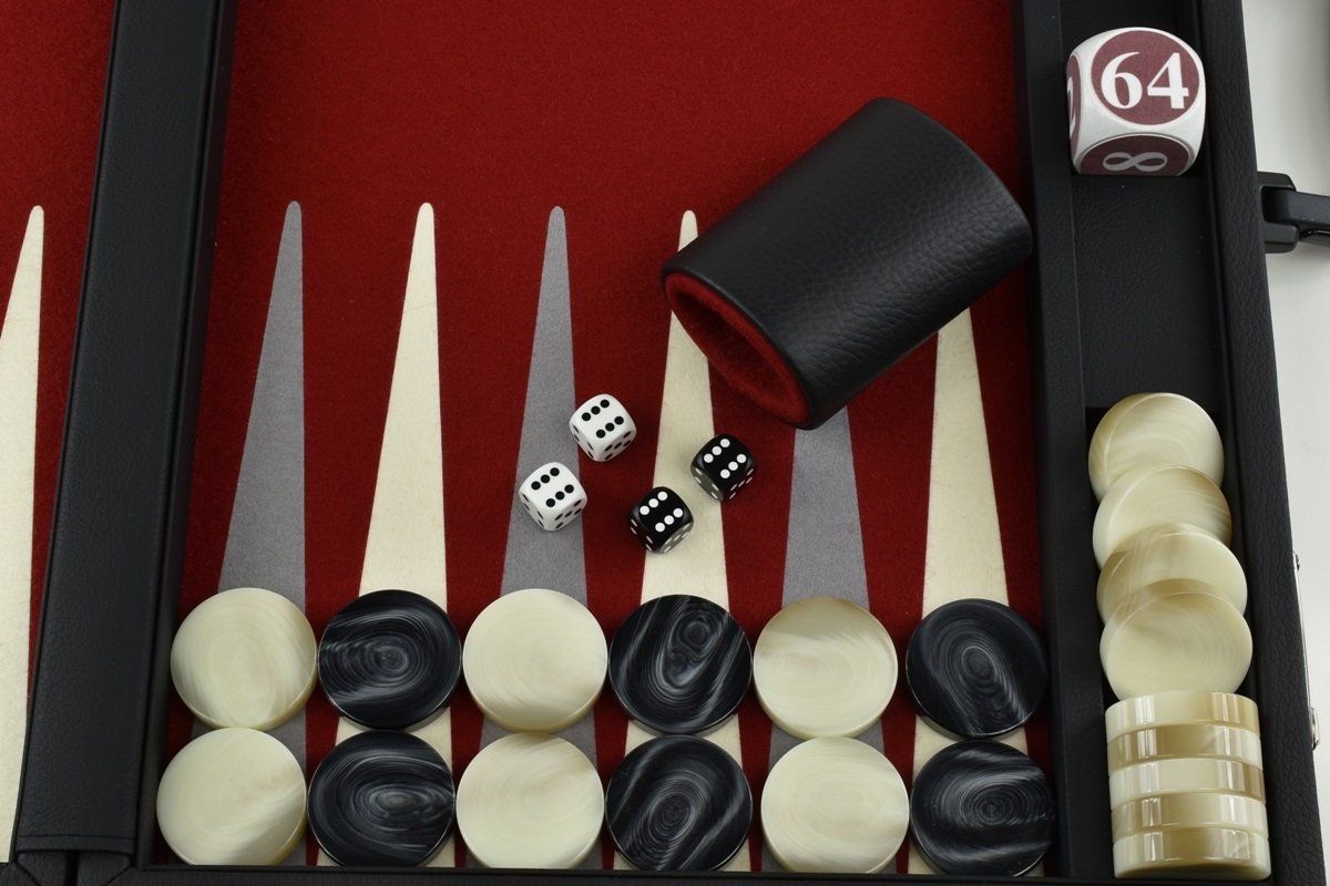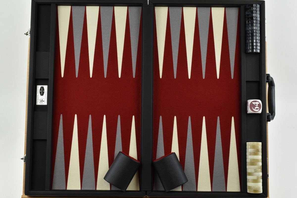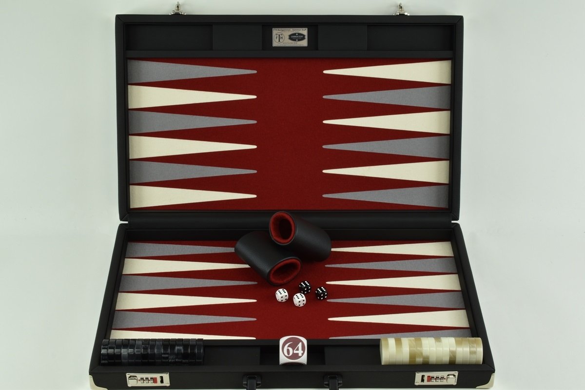 • Red-Gray/White FTH Tournament Size Backgammon Board. 45mm Checkers