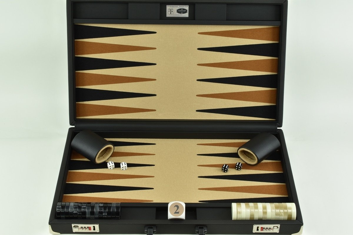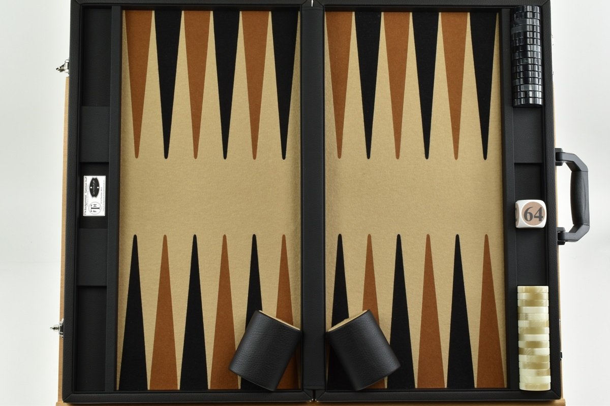 • Sand/Brown/Black FTH Tournament Size Backgammon Board. 45mm Checkers