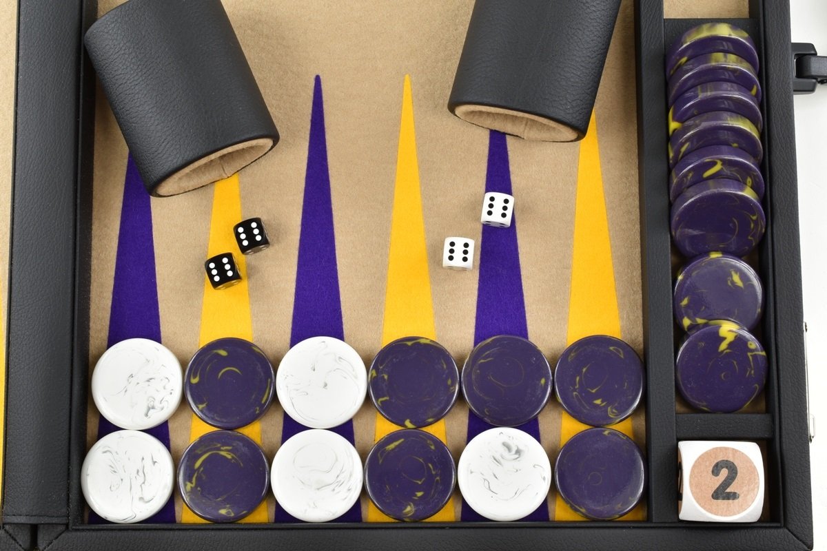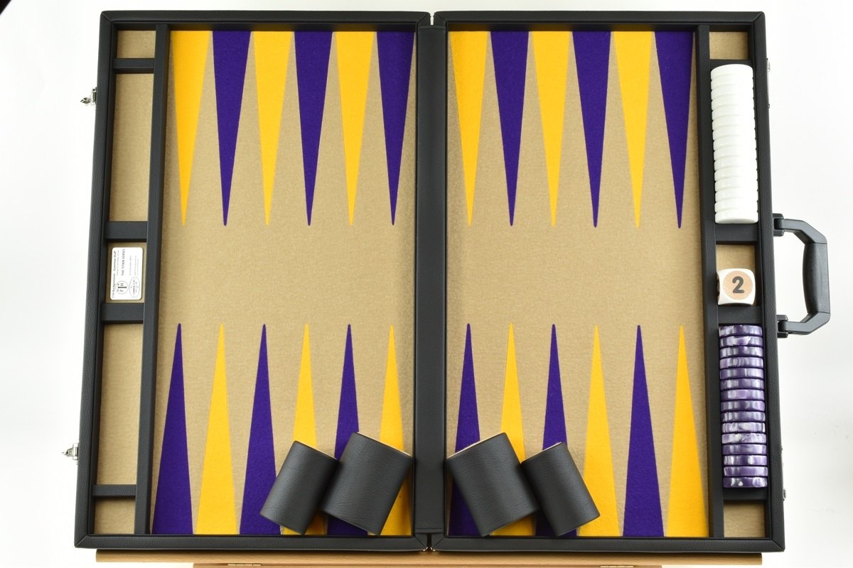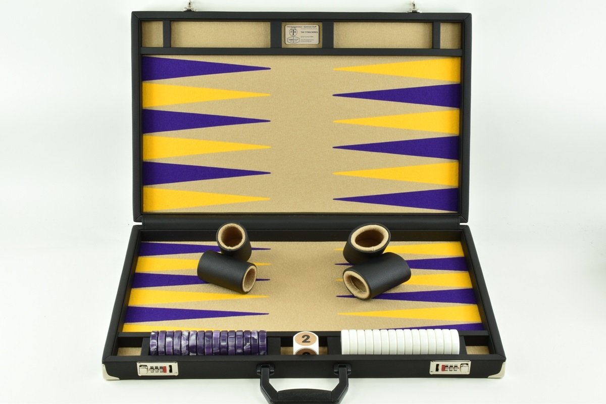 • Sand-Purple-Gold Jumbo FTH Backgammon Set. 50mm Checkers