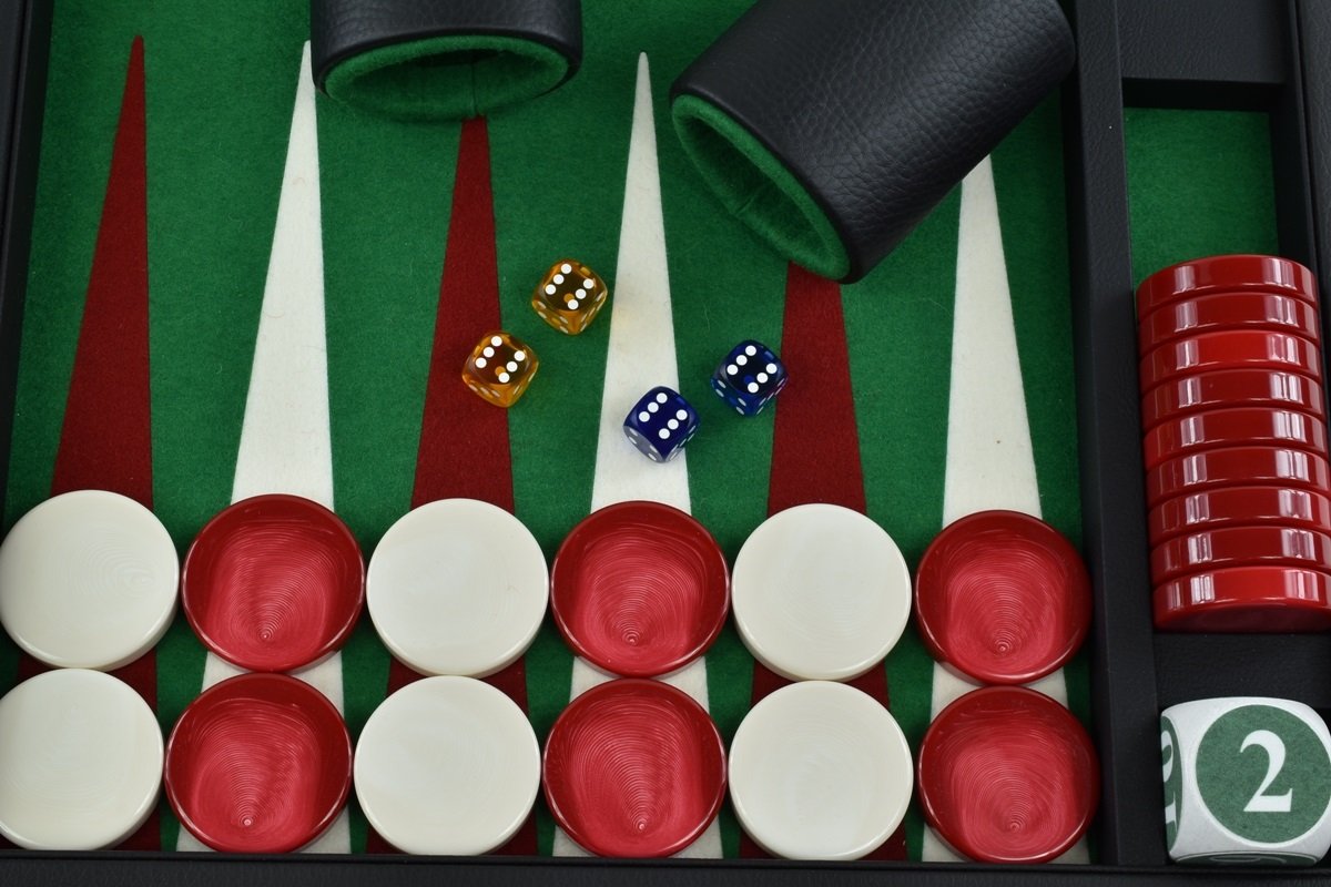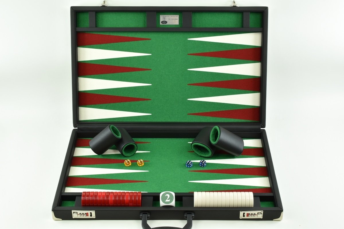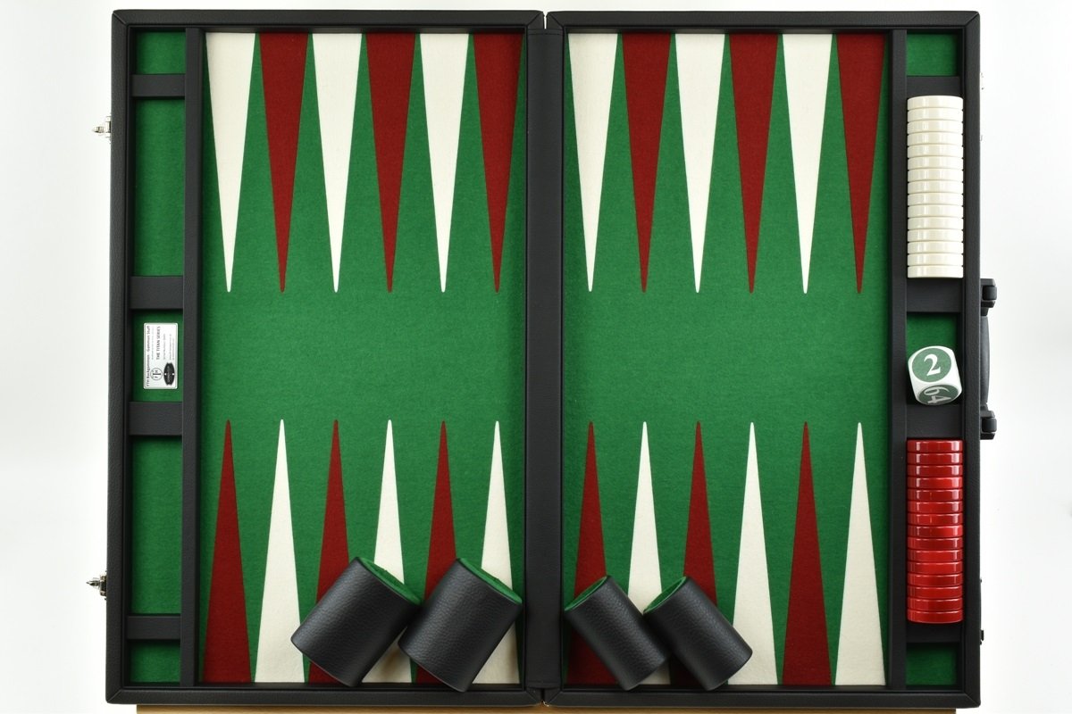 • Titan Series Green-Red-White Backgammon Set. 50mm (2″) Red and White Checkers