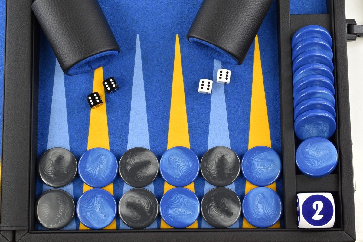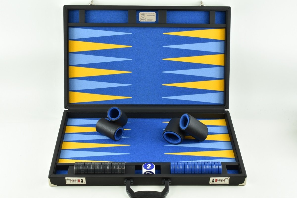 • Titan Series Pacific Blue- Yellow/Blue Backgammon Set. 50mm (2 inch) Checkers