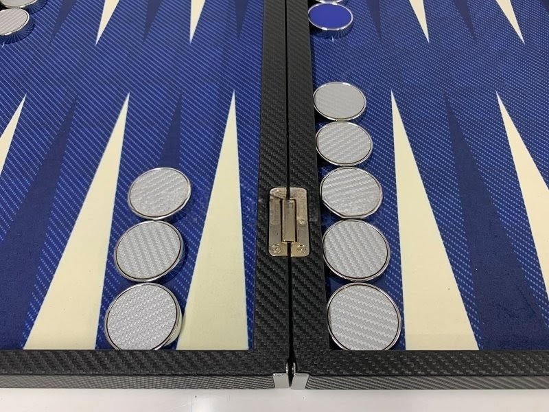 Crafted with meticulous attention to detail, this backgammon board features a striking blue carbon fiber look that exudes sophistication and style. The sleek and modern design adds a touch of elegance to any gaming experience, making it perfect for both casual and competitive play.