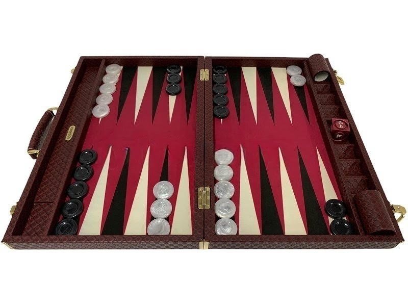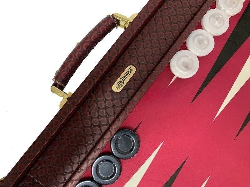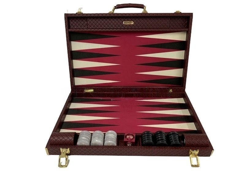 Experience the pinnacle of backgammon luxury with the Tournament Size Burgundy Octo Set.