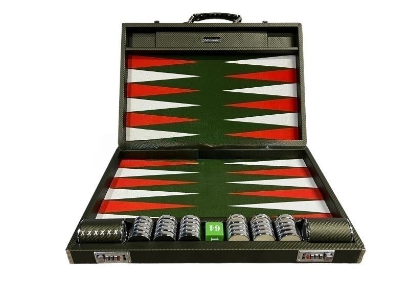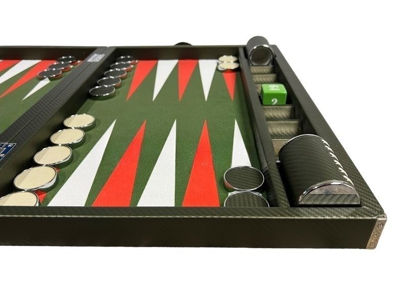 • Tournament Size Green Color Carbon Fiber Backgammon Set