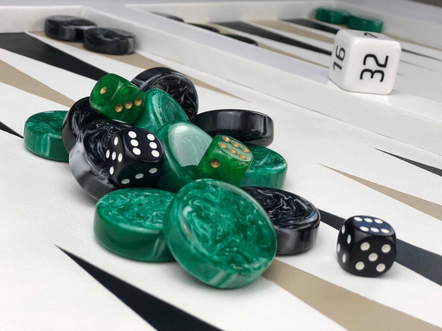 Checkers, dice, leather dice cups and doubling cubes pictured are included with all Legacy Boards orders,