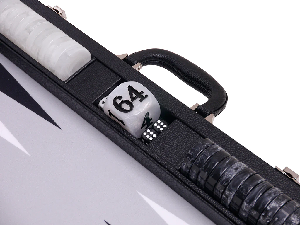 All Masters Edition backgammon sets come with the famous Wycliffe Brothers® oversized a doubling cube, measuring 1-3/4″ (42mm). When it’s time to double, you can now do so with authority! Each case also showcases reinforced luggage-style handle and nickel plated locks.