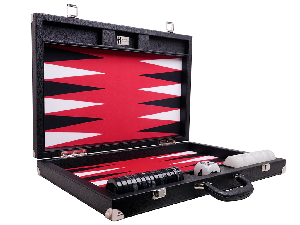 Wycliffe Brothers® 21-inch Tournament Backgammon Set – Black Case with Red Field – Masters Edition