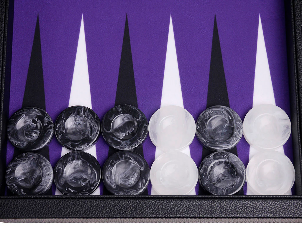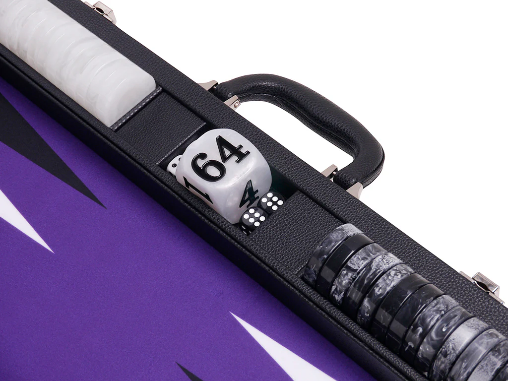 Wycliffe Brothers® 21-inch Tournament Backgammon Set – Black Case with Purple Field – Masters Edition