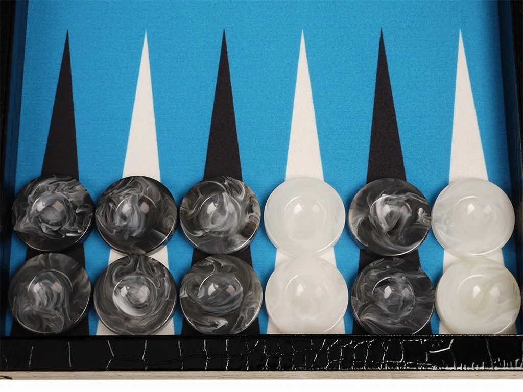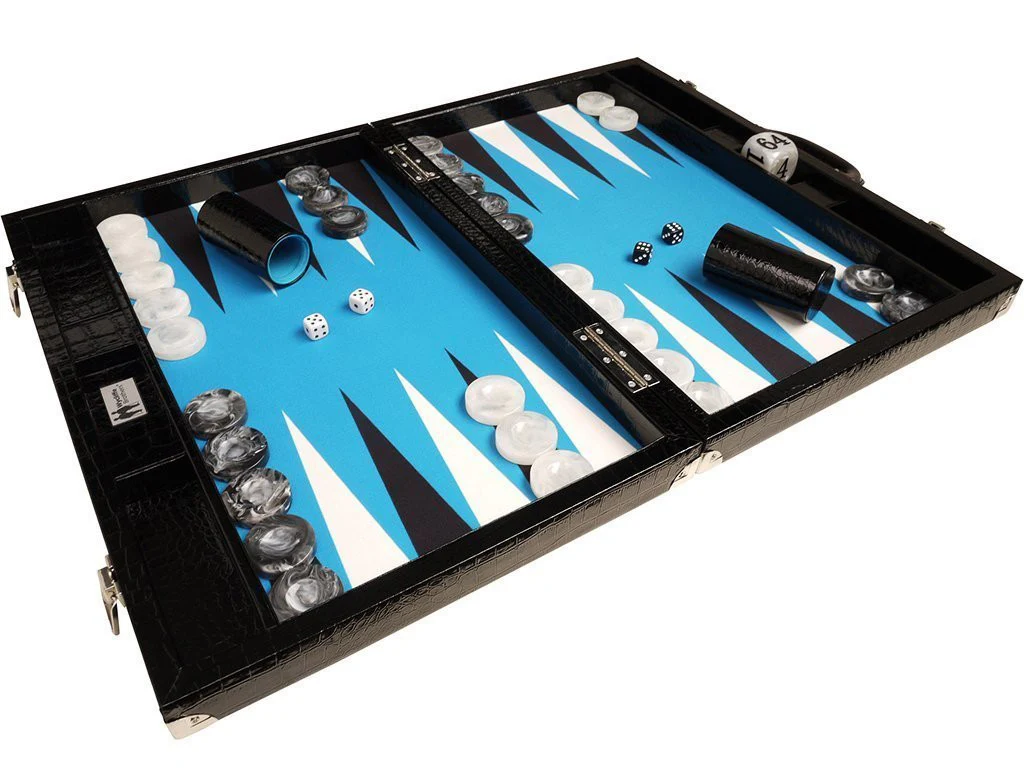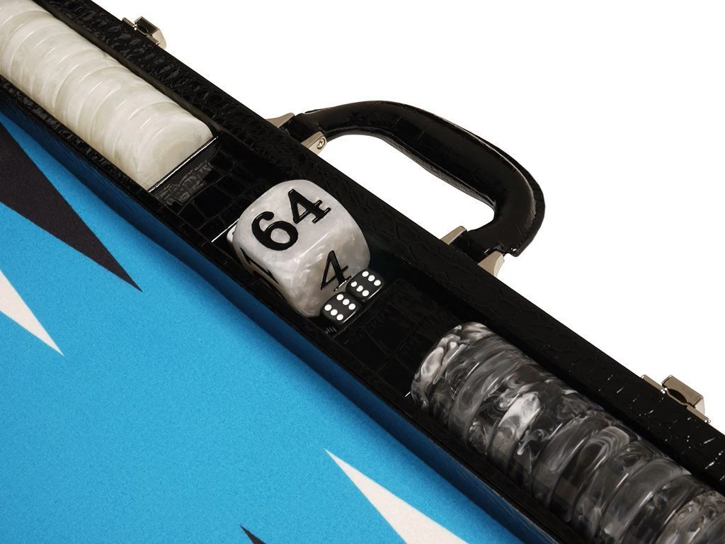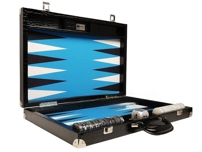 Wycliffe Brothers® 21-inch Tournament Backgammon Set – Black Croco Case with Blue Field – Gen III