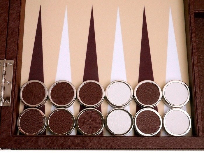 Wycliffe Brothers® 23-inch Backgammon Set with 1.75-inch Nickel Checkers – Brown Case with Beige Field – Prestige Class