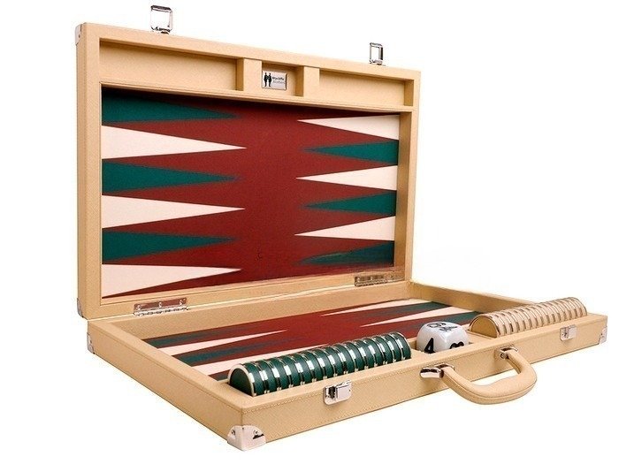 Wycliffe Brothers® 23-inch Backgammon Set with 1.75-inch Nickel Checkers – Tan Case with Brown Field – Prestige Class