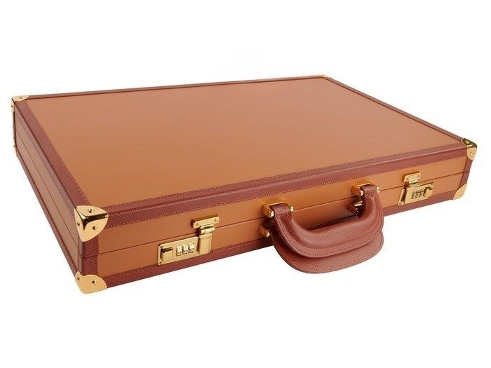 double-grip leather handle, the 24kt Gold plated locks and hinges, and the elegantly constructed leather dice cups.
