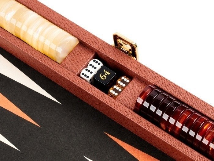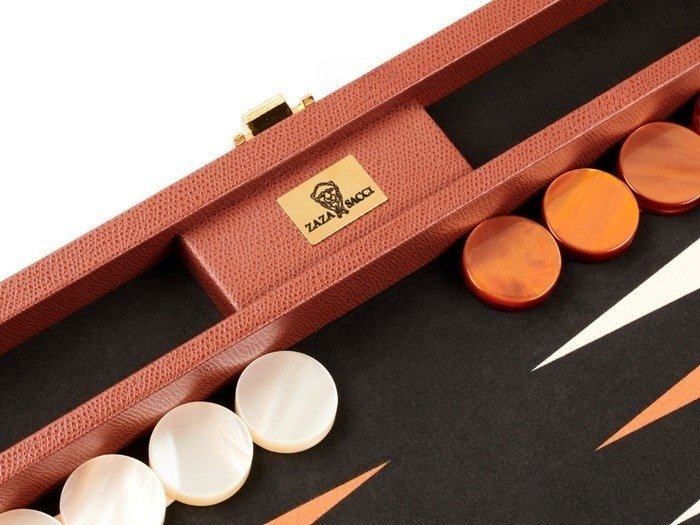 In every Zaza & Sacci backgammon set, you can expect top-quality production during the manufacturing process. This compact backgammon set closes firmly with a 24kt gold-plated key lock.