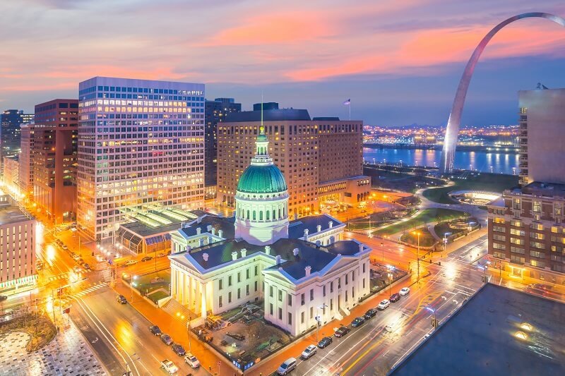 St. Louis downtown city skyline at twilight in USA